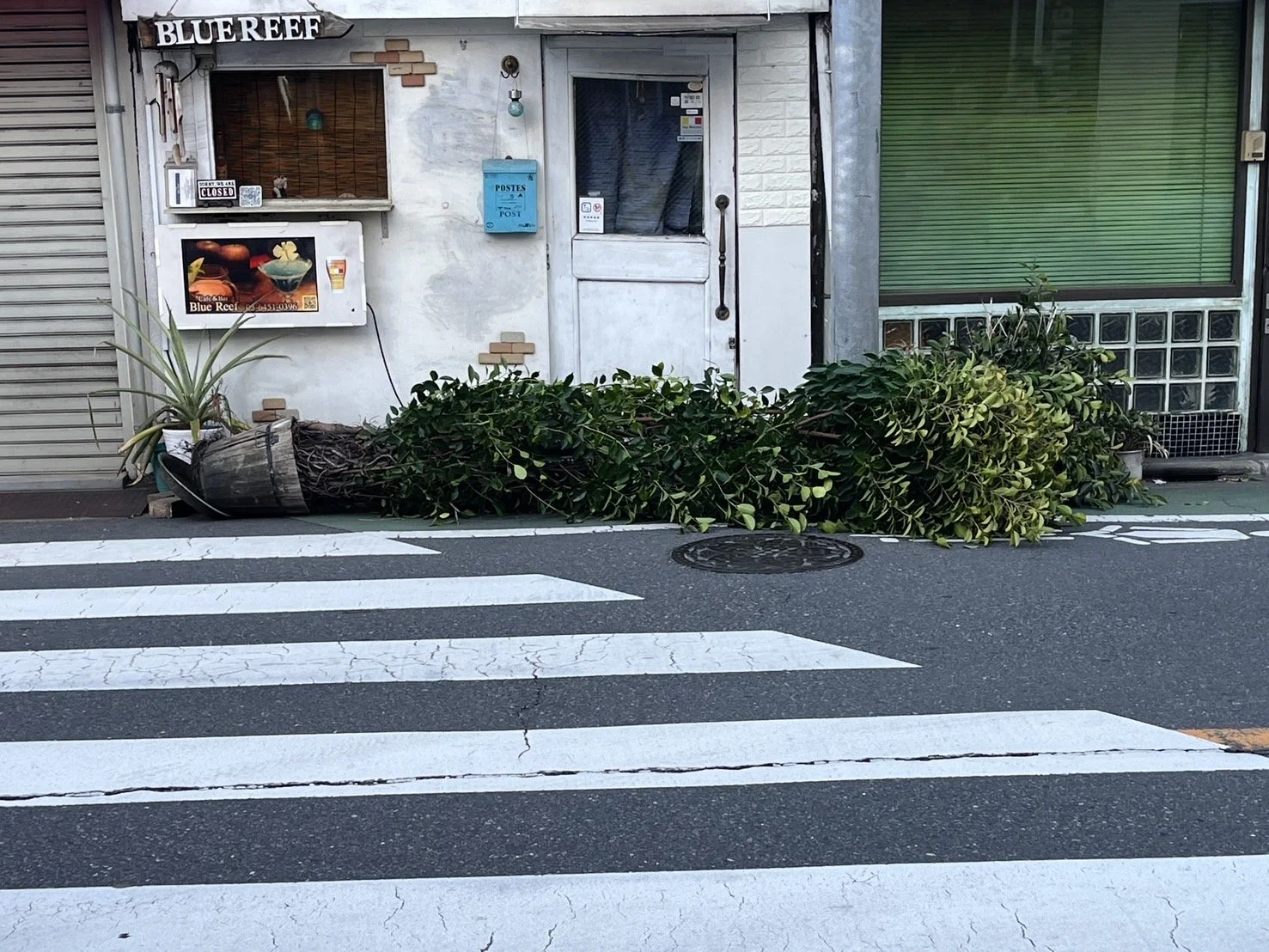 この14年間で1番強い風が吹いたのか。年明けの突風で張り巡らせた根も細い部分は引きちぎられ、ガジュマルさんは店の扉を塞ぐように倒れていた。