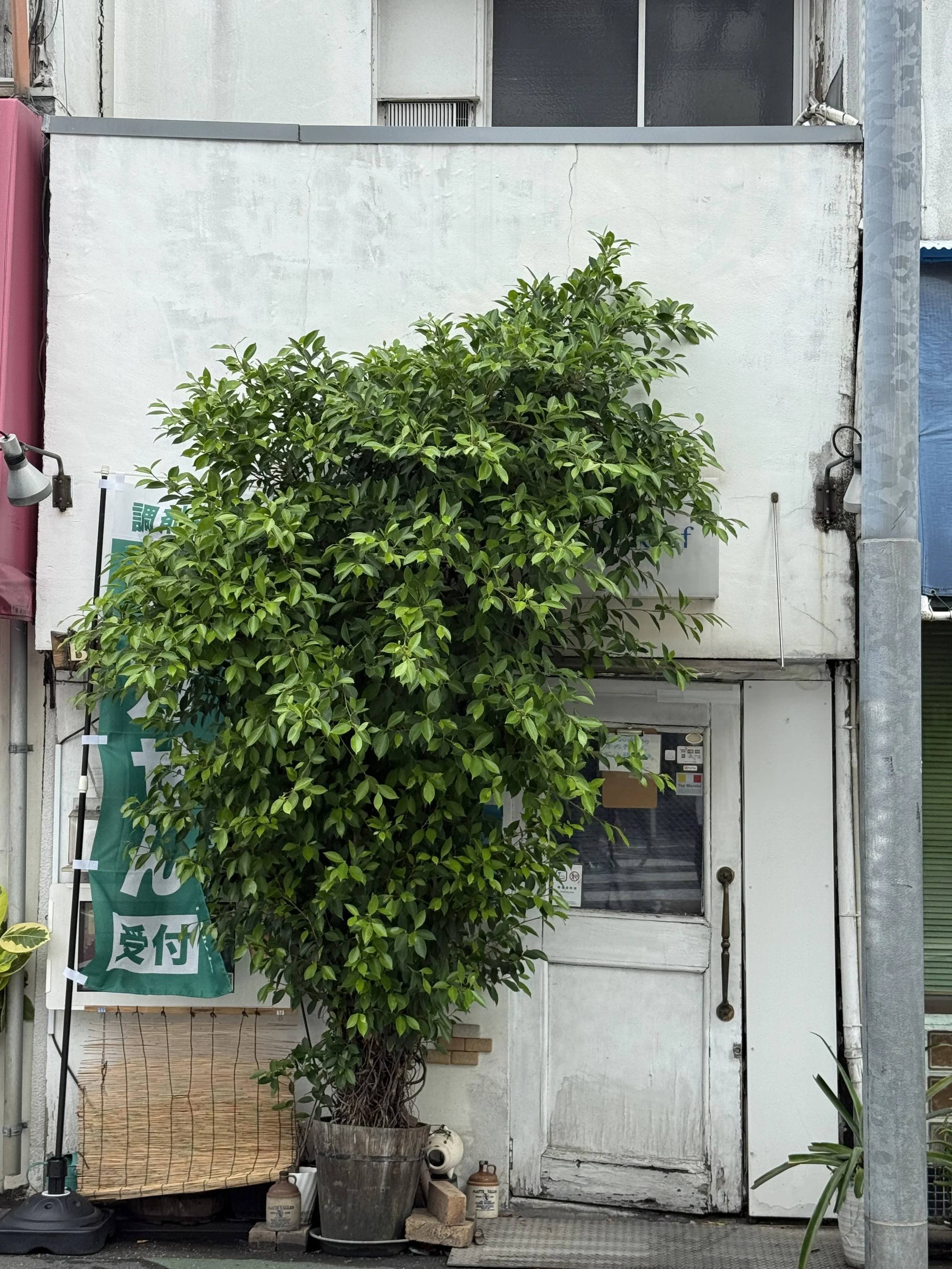 約1年、窓際で育てていたら、突然お店を出す話が舞い込んできた。あれよあれよという間に、お店が始まり、ガジュマルさんは、お店の入口に置かれた。たまに吹く突風に、まだ軽いガジュマルさんは幾度となく倒されたけど、そんな事にめげることなく、スクスクと育っていった。