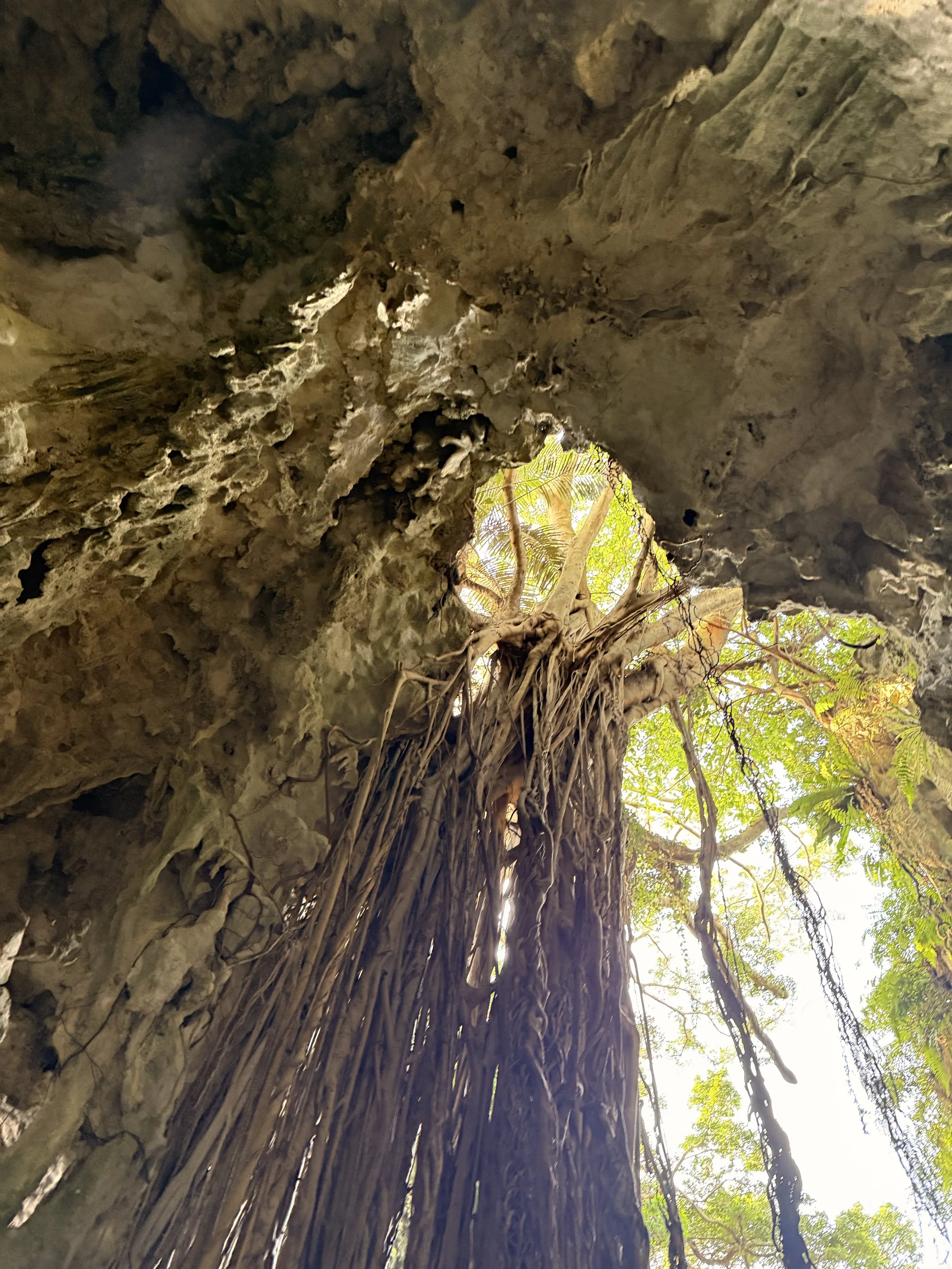 語れない地球の命と時の営みが沖縄という土地には多く残る。地球の内側に入っていくという感覚は尊い。何千年前に露出した谷には根が伸びている。驚く程に長く伸びたガジュマルの願いが。
